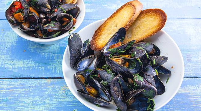 بلح البحر المطبوخ على البخار مع البقدونس:
