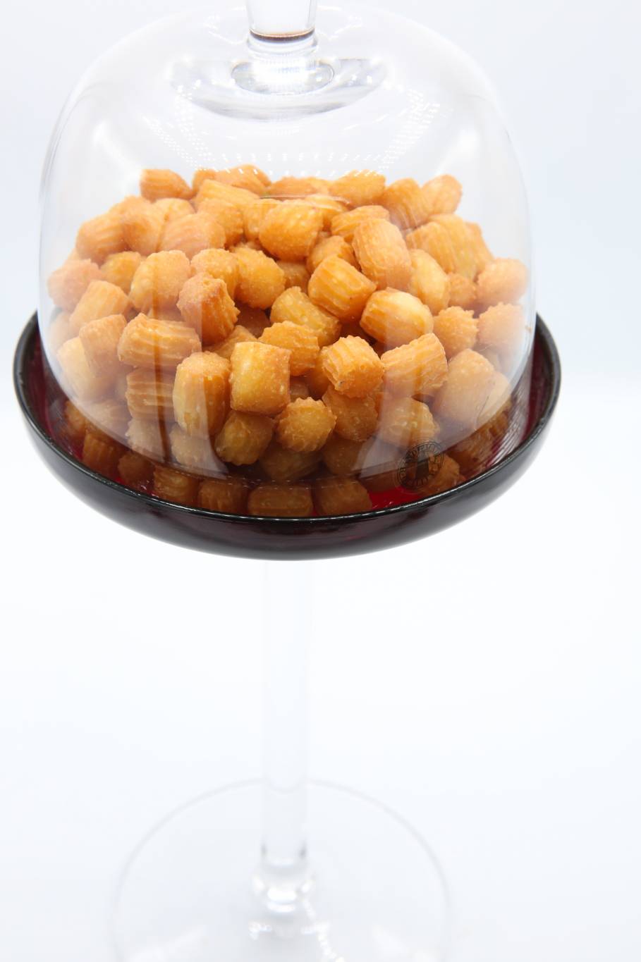 في طبق عميق ضعي كمية وفيرة من القطر. دعيها بجانبك أثناء تشكيل بلح الشام.