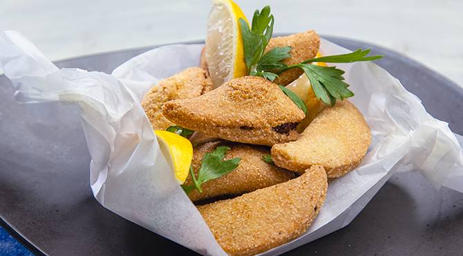 تقلى غمراً بالزيت بحرارة 180 درجة مئوية للحصول على لون ذهبي جميل.