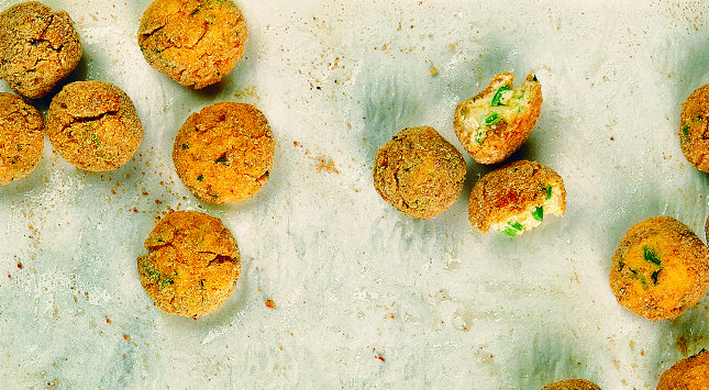 يُشكل ملء ½ ملعقة طعام في المرة على شكل دوائر بحجم 1 بوصة، وتُدحرج الدوائر في البقسماط.