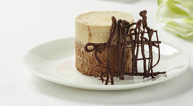 يُغرف الخليط على قوالب تقديم. يُبرد ثم يوضع في الثلاجة ليتماسك.