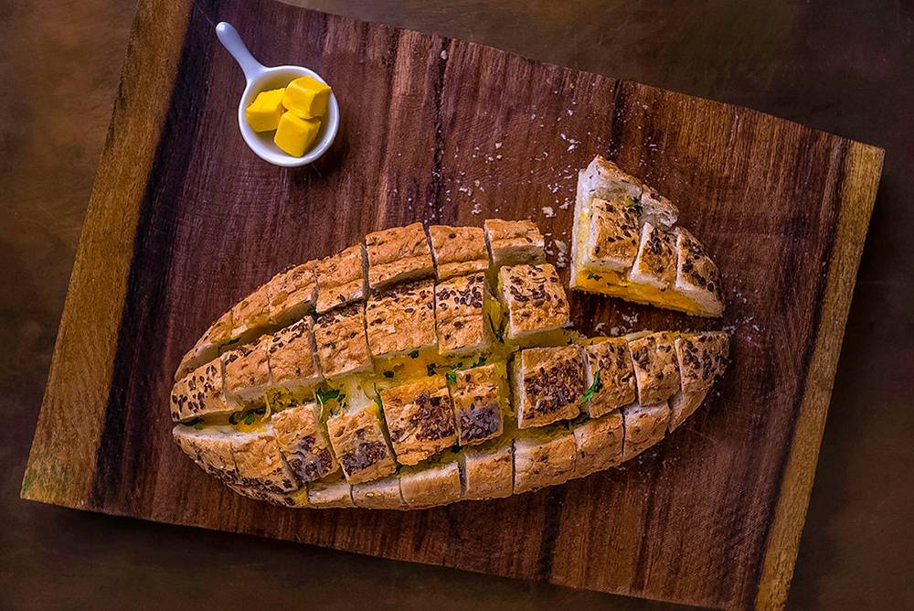 يقطع الخبز بشكل متوازى على الا يقطع بكامله لعمل قاعدة للبيتزا.
