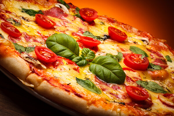 5. تخبز البيتزا في فرن حام إلى أن تنضج العجينة وتذوب الجبنة.