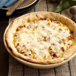 - إبسطى عجينة البيتزا فى القاع ثم إضغطى الجوانب من أعلى إلى أسفل فى الصينية .