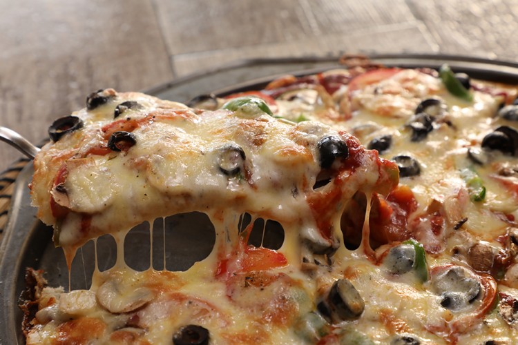 - وزعي الفليفلة الخضراء، والبصل، والفطر، والطماطم، والزيتون الأسود.