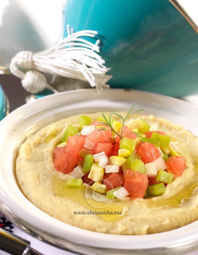 - عندما يصبح الفول ناعما يهرس باستعمال ملعقة بسط خشبية ثم تفرم في مطحنة الخضر أو تصفى بمصفاة رفيعة للحصول على عجين فول ناعم وبدون حبيبات.