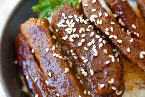 - نضيف الصوص فوق اللحم ويرش فوقها السمسم المحمص تقدم مع خضار سوتية تقدم ساخنة بالهنا والشفا.
