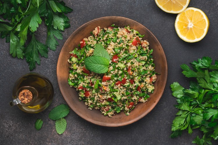تبولة السبانخ بالكينوا … قدمي على سفرتك أطيب وصفات المقبلات الشامية من وصفات التبولة الرائعة واللذيذة والخفيفة، جربي تبولة السبانخ بالكينوا الصحية وتمتعي بوجبة مميزة مع عائلتك