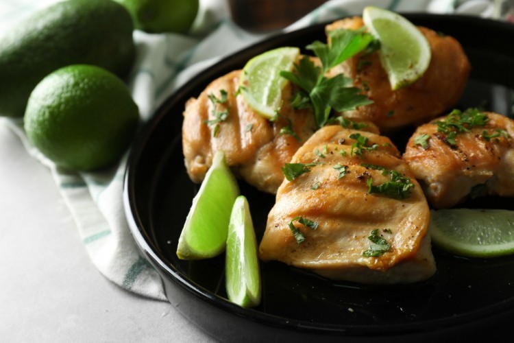 1. اخلطي الليمون مع زيت الزيتون ومرق الدجاج.