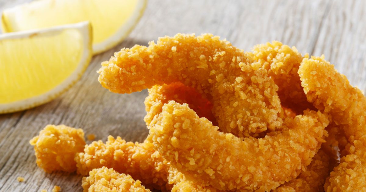 7- اخرجي حبات الروبيان من الثلاجة وغمسيها بخليط البيض ثم بخليط الدقيق.
