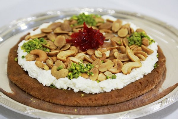 - عندما تبرد المفروكة نضع طبقة من القشطة ثم نرش المكسرات المحمصة سواء لوز أو جوز أو كاجو أو حسب الرغبة ونقدمها .