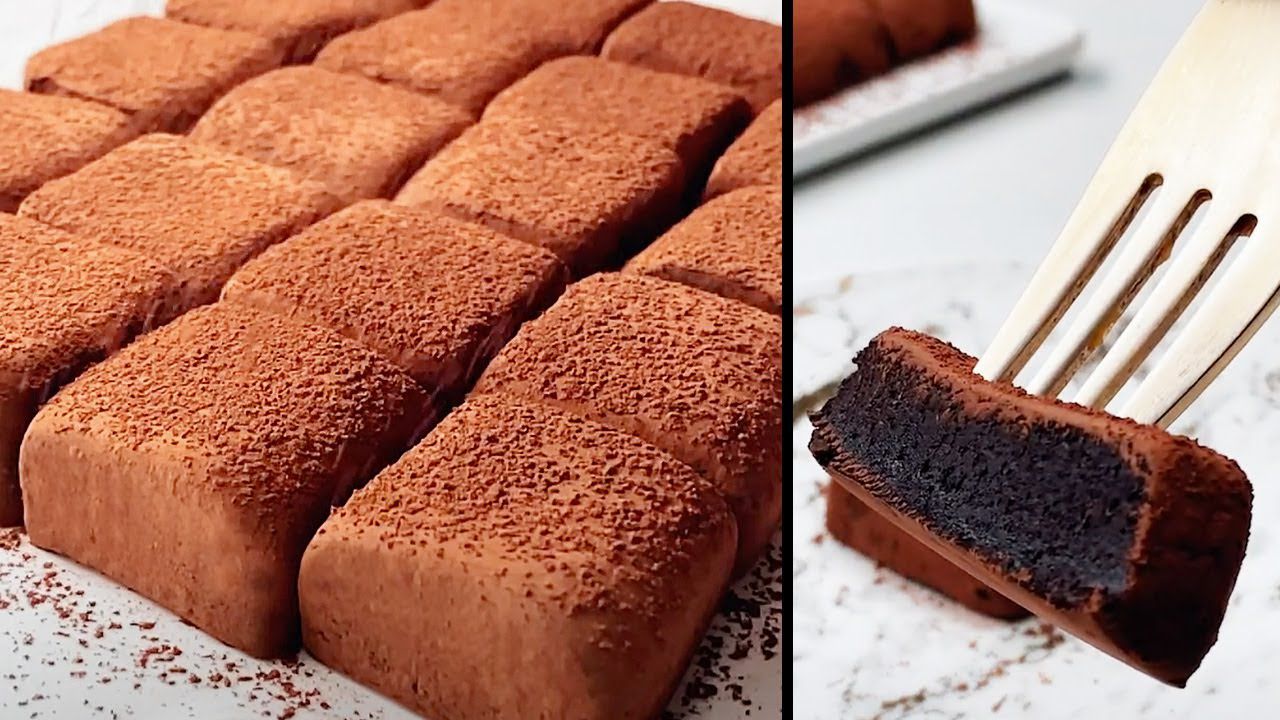 5- شكلي القطع بحسب رغبتك وصفّيها في طبق التقديم ثمّ أنثري المزيد من الكاكاو على الوجه.