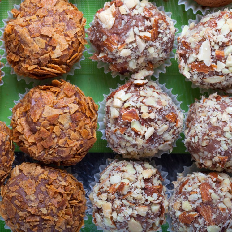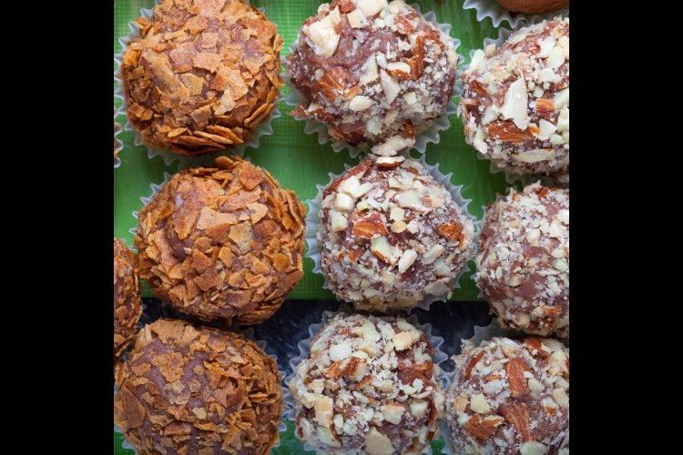 6. غطي الكرات بالبندق وجوز الهند والكاكاو.