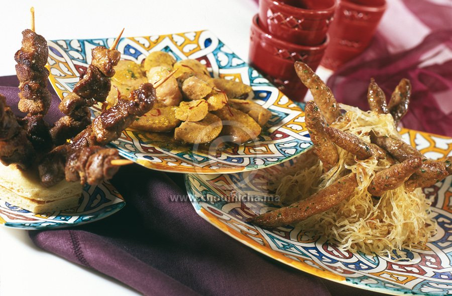 - تقدم أسياخ اللحم ساخنة مرفوقة بالخبز والشاي بالنعناع.