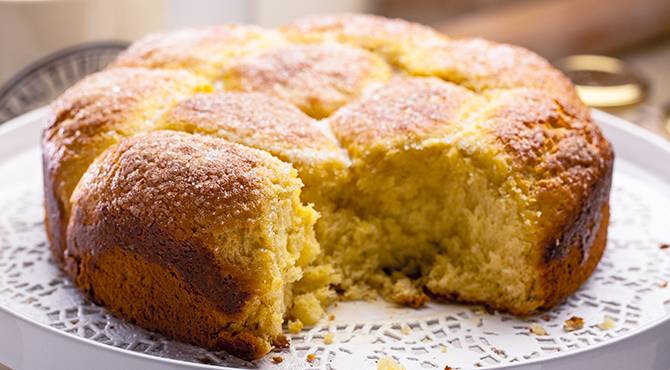 تلملم مرة ثانية برفق وتقسم الى اجزاء متساوية وتشكل على شكل كرات قطرها 5 سم تقريبا وتصف في صينية عميقة قليلا خاصة بالخبيز مدهونة بقليل من الزبدة وزيت الزيتون بحيث تبعد عن بعضها 2 سم فقط