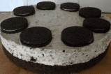 - نزين الكعكة بالأوريو ونضغط بلطف حتى يثبت أو يمكنك تزينها بحسب الرغبة.