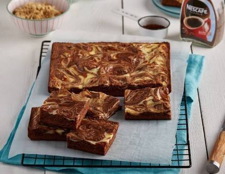 - ضعي نصف خليط البراونيز في الصينية ثم أضيفي فوقها خليط التشيز كيك.