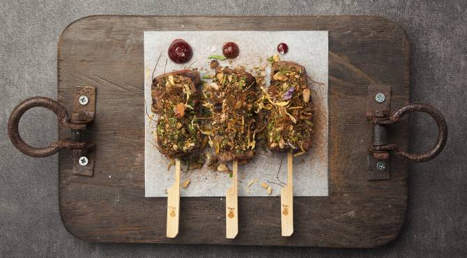 يزين كباب أنتيكوتشو الكرز بالملح والقرفة والأزهار الجافة.