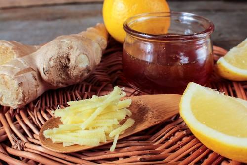 نخلط الزنجبيل مع عصير الليمون والعسل الابيض، ونضعهم في مقلاة غويطة على نار مرتفعة حتى تبدأ في الغليان.