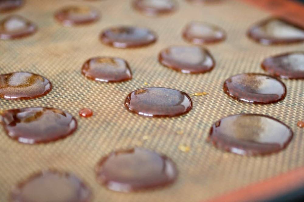 نوزع الخليط في قوالب سليكون أو على حصيرة سليكون “كما في الصورة” باستخدام معلقة صغيرة.