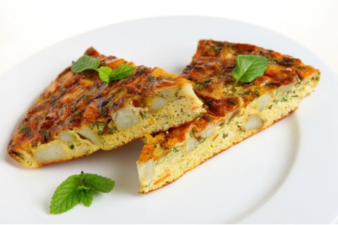 - ثم نقوم بسكبها في القلاة فوق مكعبات البطاطس و نحرك المزيج قليلاً ثم نتركه على نار هادئة إلى متوسطة لمدة تتراوح بين 5 و 7 دقائق، أي إلى أن يكتسب الوجه السفلي اللون البني دون أن يحترق، ويحين بعدها قلب البيض ليكتسب الوجه الآخر ذات النضج. وتكون هنا التورتيا ا