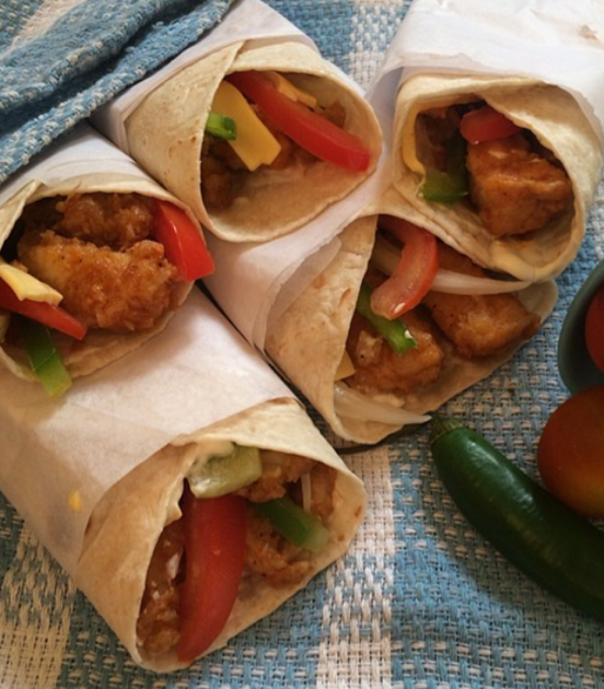 5. توضع سندويشات التورتيلا في الفرن 5 دقائق حتى تتحمر ثم تقدم.