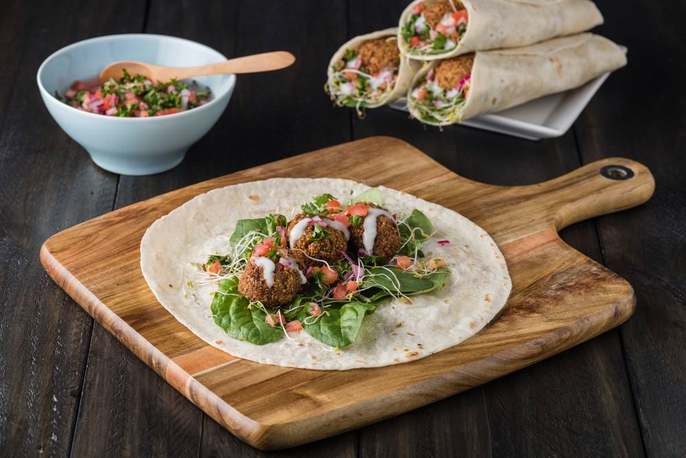 - يفرد خبز التورتيلا، ويدهن بالثومية، ويوضع فوقها الجرجير.