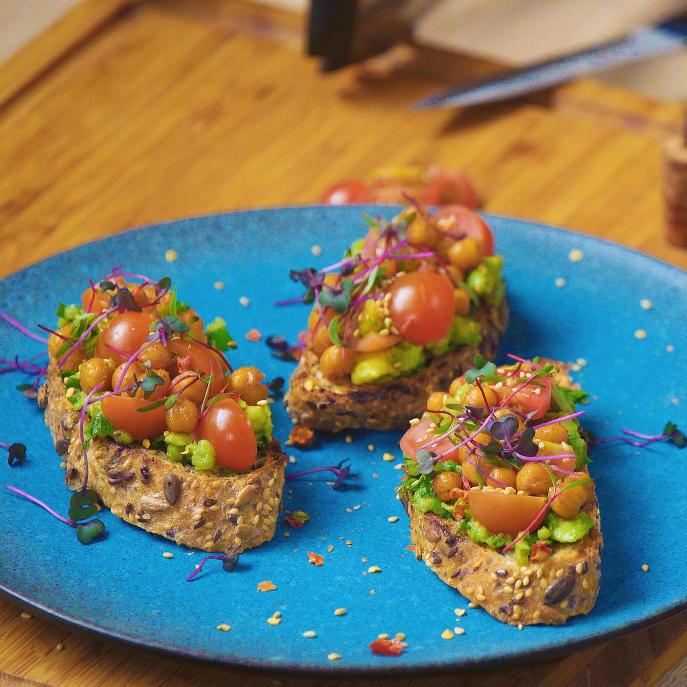 توست الأفوكادو مع الحمص المقرمش