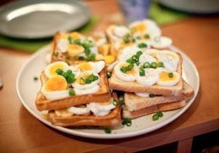 - وزّعي البيض على قطع التوست ويزين .