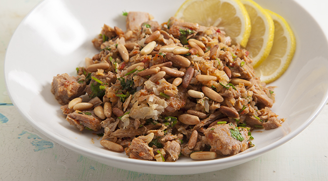 تضاف التونة وتخلط جيداً.