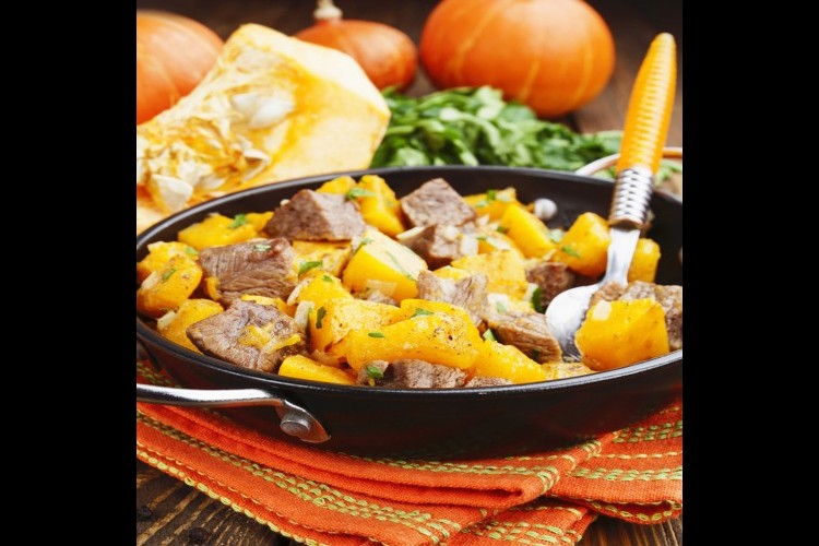 5. أضيفي البطاطس والقرع والفاصوليا واللومي وقطع اللحم وقلبي بحرص.