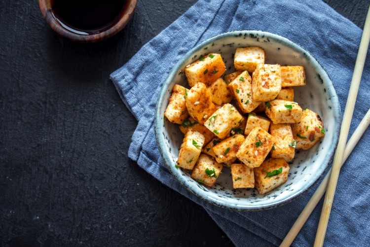 - أضيفي جبن الحلوم المكعبات والبابريكا وقلبي حتى يتحمر الجبن من جميع الجهات ويصبح ذهبياً.