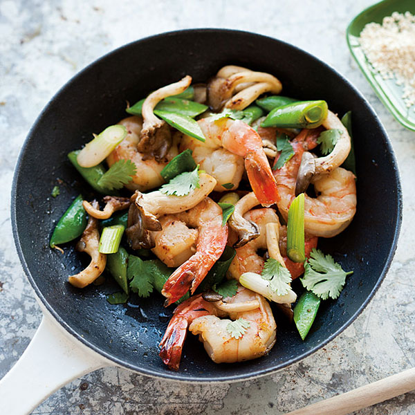 جمبري، وفطر وبازلاء مقلاة على الطريقة الصينية