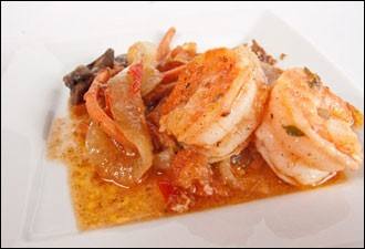 - يغسل الجمبرى جيدا ويوضع فى وعاء ويتبل بالملح والفلفل.