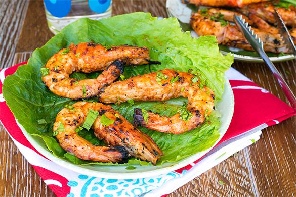 - ثم يطهى عليها الجمبري لمدة 1 دقيقة لكل جانب ويقدم.
