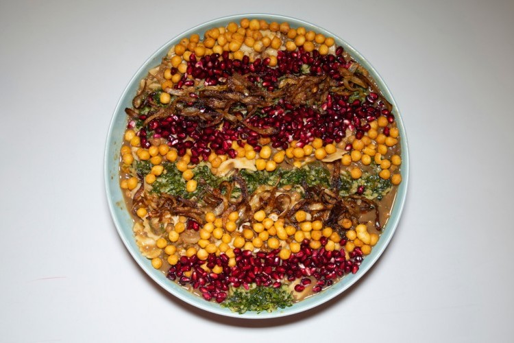 - قومي بتزيين الطبق بالكزبرة والثوم المقليين ثم ضعي البصل المقلي وبالنهاية ضعي القرقوشة.