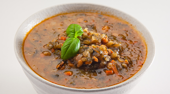 إذا كان لون الحساء باهتاً يضاف بعض معجون الطماطم.