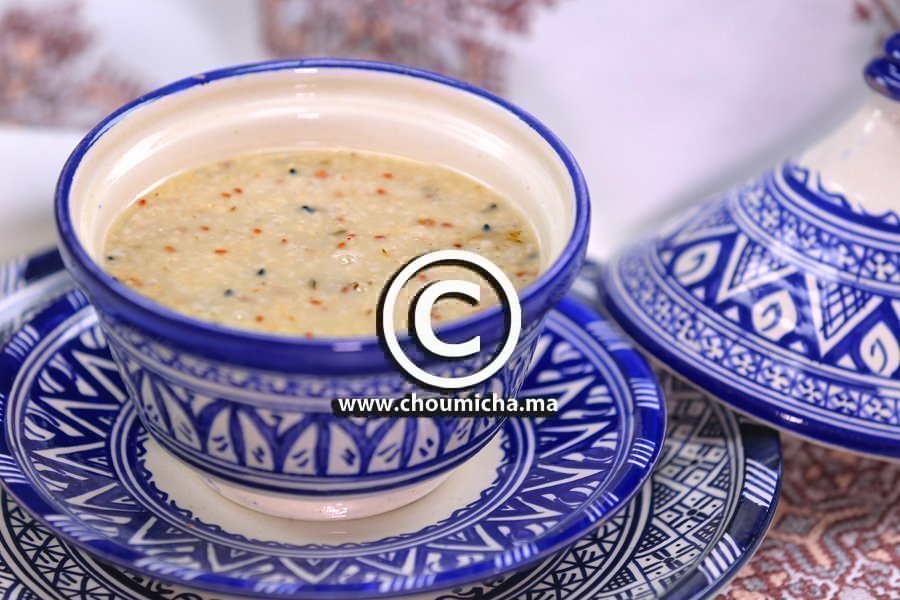 - في طنجرة، يوضع السميد، الزعيترة، الثوم بقشرته إما كامل أو مضغوط، الماء وزيت الزيتون.