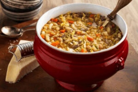 - يُرش البقدونس وجبنة رومانو المبشورة ويُنقل الطبق إلى وعاء كبير للشوربة ويُرش زيت الزيتون فوقه.