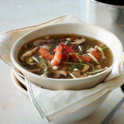 - ثم ضعي فيه كمية من الماء ، الجمبري ، أعواد الكرفس ، المشروم ، البصل ، ورقة اللورى والكريمة البيضاء