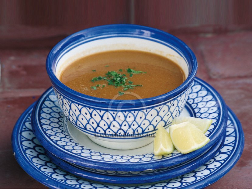 - يقدم الحساء جد ساخن مزينا بالبقدونس ومصحوبا بقطع الخبز المحمصة وبأرباع الليمون الحامض.