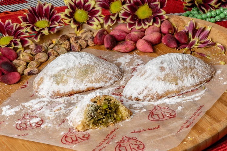 6. طريقة تحضير حشو الفستق: يُفرم الفستق، بوساطة الخلَّاط الكهربائي، ثمَّ يصبُّ القطر فوقه فالحليب، مع الخلط اليدوي، جيِّدًا.