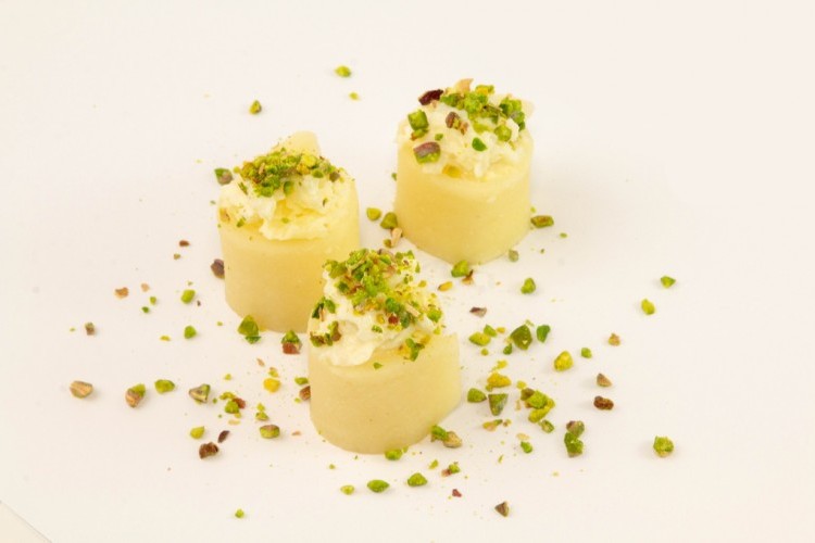 - وزعي القشطة البلدية عليها ولفيها على شكل رول وقطعيها دوائر متوسطة.