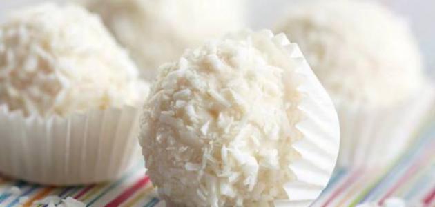 - نشكّل الخليط على شكل كرات صغيرة، ونضعها بجوز الهند.