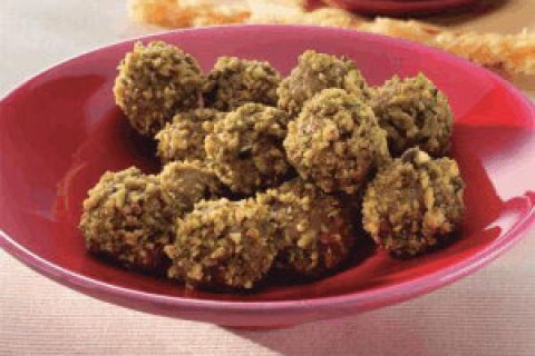 - يُقرّص المزيج على شكل كرات صغيرة، ثم تُغمس الكرات في الفستق المفروم وتُغطّى وتُترك في البرّاد.