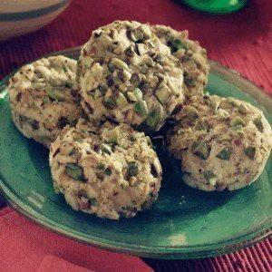 4. تغلف كرات العجين المحشية بالفستق المفروم، ثم توضع في قوالب الفطائر وترص برقة