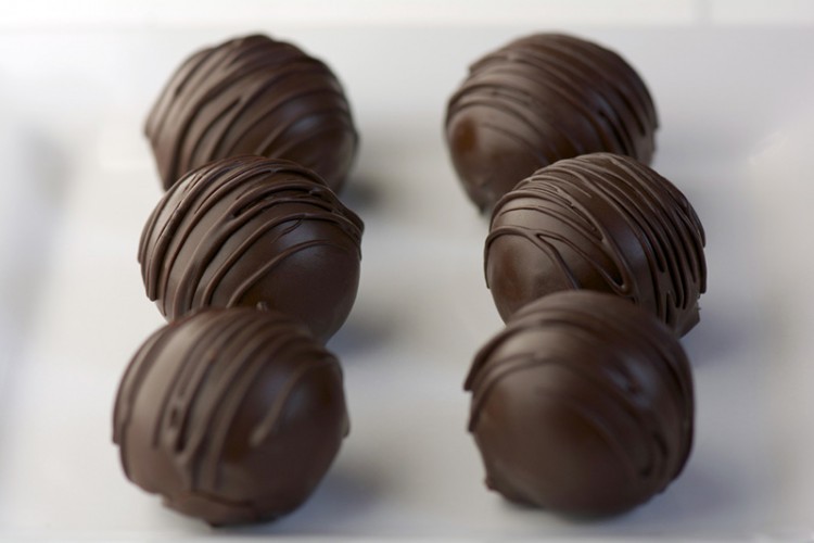 4. اغمسي الكرات في الشوكولاتة المذوبة لتتغطى من كل الجهات.