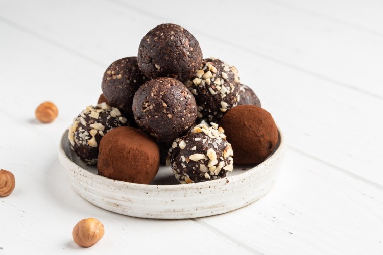 - ضعي كرات التمر على صينية وغلّفيها بورق نايلون لاصق.