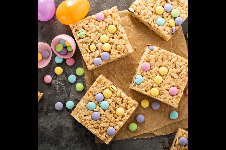 2. ضعي الرايس كريسب في وعاء مدهون بالزبدة.