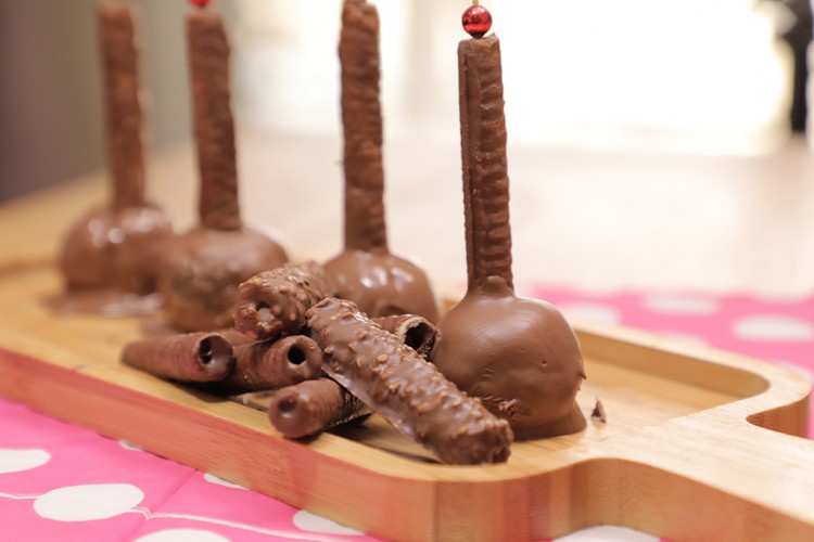 5. غطسي الكرات بشوكولاتة التغليفة المذوبة، وأدخلي الكرات للثلاجة مدة 3 ساعات على الأقل قبل التقديم.